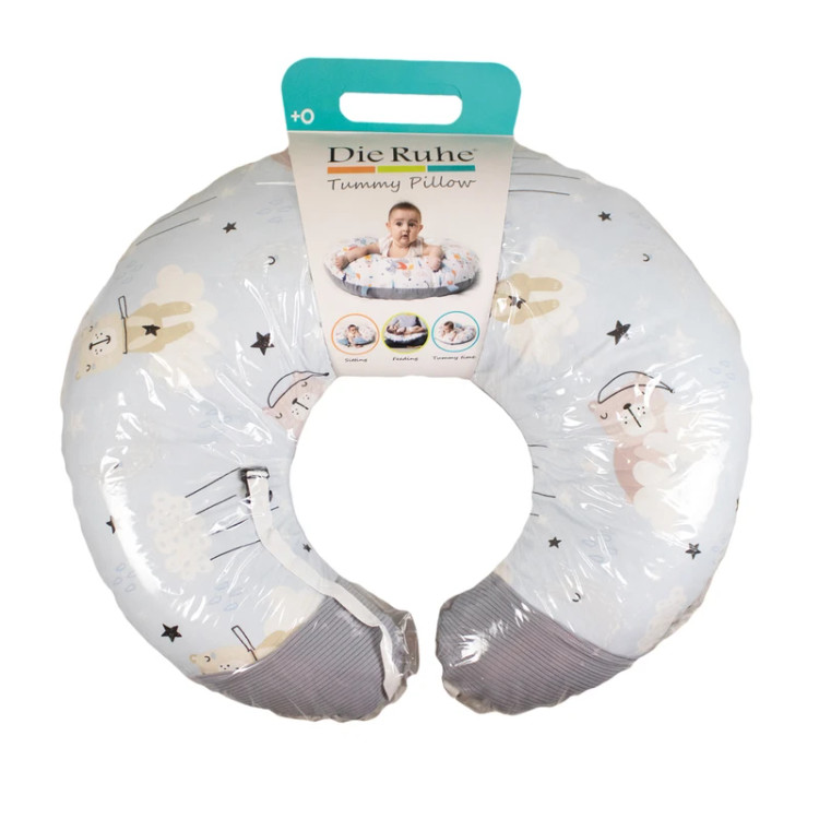 بالش تامی پیلو از برند دی روحه DieRuhe یک بالش چند منظوره است. این بالش به عنوان بالش شیردهی به راحتی به کمر مادر بسته می شود و مادر و نوزاد را در وضعیت ارگونومیک قرار می دهد تا شیر دادن را راحت تر کند و از کمردرد و آسیب های گردن و شانه جلوگیری کند. هم چنین در این حالت می توانید از جیب های این بالش برای قرار دادن پد شیردهی یا وسایل دیگر استفاده کنید. کاربرد دیگر این بالش به عنوان بالش تامی تایم است. برای زمانی که لازم است نوزاد به شکم دراز بکشد. در این حالت می توانید به دو حلقه ای که در بالش وجود دارد دندان گیر یا اسباب بازی های مورد علاقه فرزندتان را آویزان کنید تا کودک از این وضعیت خوابیدن لذت بیشتری ببرد. کاربرد دیگر این بالش برای آموزش نشستن وبه عنوان نشیمن کودک است تا کودک در محیطی ایمن و نرم باشد و نگرانی از افتادن کودک به طرفین وجود نداشته باشد. در این حالت بهتر است با وارو کردن جیب ها بند را درون جیب های دو طرف بالش پنهان کنید تا از دسترس کودک خارج شوند. روکش این بالش از پارچه صد در صد پنبه ای تهیه شده، زیپ دارد و قابل جدا شدن و شستشو می باشد.
