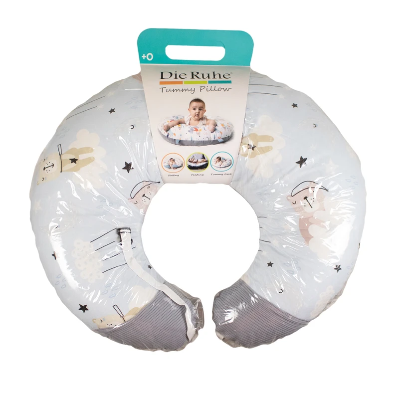 بالش تامی پیلو از برند دی روحه DieRuhe یک بالش چند منظوره است. این بالش به عنوان بالش شیردهی به راحتی به کمر مادر بسته می شود و مادر و نوزاد را در وضعیت ارگونومیک قرار می دهد تا شیر دادن را راحت تر کند و از کمردرد و آسیب های گردن و شانه جلوگیری کند. هم چنین در این حالت می توانید از جیب های این بالش برای قرار دادن پد شیردهی یا وسایل دیگر استفاده کنید. کاربرد دیگر این بالش به عنوان بالش تامی تایم است. برای زمانی که لازم است نوزاد به شکم دراز بکشد. در این حالت می توانید به دو حلقه ای که در بالش وجود دارد دندان گیر یا اسباب بازی های مورد علاقه فرزندتان را آویزان کنید تا کودک از این وضعیت خوابیدن لذت بیشتری ببرد. کاربرد دیگر این بالش برای آموزش نشستن وبه عنوان نشیمن کودک است تا کودک در محیطی ایمن و نرم باشد و نگرانی از افتادن کودک به طرفین وجود نداشته باشد. در این حالت بهتر است با وارو کردن جیب ها بند را درون جیب های دو طرف بالش پنهان کنید تا از دسترس کودک خارج شوند. روکش این بالش از پارچه صد در صد پنبه ای تهیه شده، زیپ دارد و قابل جدا شدن و شستشو می باشد.